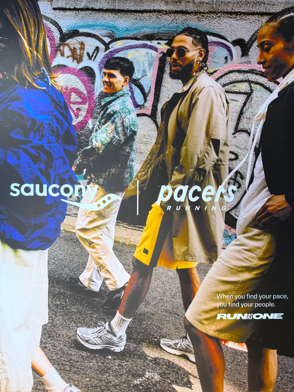 Come visit us at Pacers Georgetown and experience The Saucony Shop on the second floor. This unique Saucony experience features both performance and lifestyle products so your feet are covered morning, noon, and night. All Saucony purchases between now and August 30th will come with a free cold brew in a "Run as One" mug.